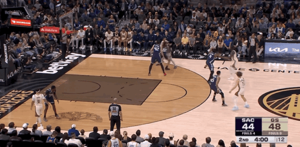 易边再战,库里仍然是替补出战,国王多次抓住机会迫近分差到个位数,但是勇士持续有进攻回应,双方分差在10分左右徘徊。库里在本节还剩下6分08秒登场,他与队友之间连续出现传接球配合失误,让对手拥有很好的反击机会。库里在本节遭到严防没有很好的出手机会,单节没有得分贡献,导致勇士在最后时刻进攻停滞,让国王打出一波9-0的进攻高潮,成功迫近分差到4分进入第四节。